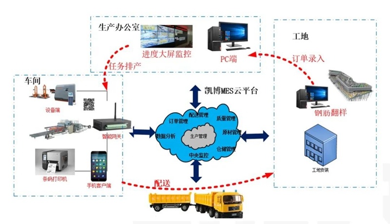 并且,凱博科技攜手中國鐵道科學(xué)研究院集團有限公司,開發(fā)凱博鋼筋加工管理軟件系統(tǒng)和鋼筋加工遠程控制系統(tǒng),打造智能控制中心。鋼筋加工管理軟件系統(tǒng)以鋼筋加工過程中物資流管理為核心,借助工業(yè)互聯(lián)網(wǎng)、云服務(wù)、智能設(shè)備等技術(shù)手段,實現(xiàn)多項目多任務(wù)遠程訂單管理,實現(xiàn)訂單排產(chǎn)、生產(chǎn)訂單分發(fā)、生產(chǎn)標牌打印、成品完成報工,成品出入庫等功能,同時能夠以電子大屏實現(xiàn)項目訂單動態(tài)實時監(jiān)控、加工廠整體運營狀態(tài)的中心化顯示。鋼筋加工遠程控制系統(tǒng),可實時顯示加工場各種設(shè)備生產(chǎn)狀態(tài),同時實現(xiàn)中控室對現(xiàn)場設(shè)備啟動和停止的遠程控制,造就了高鐵梁場鋼筋加工數(shù)字化新模式!