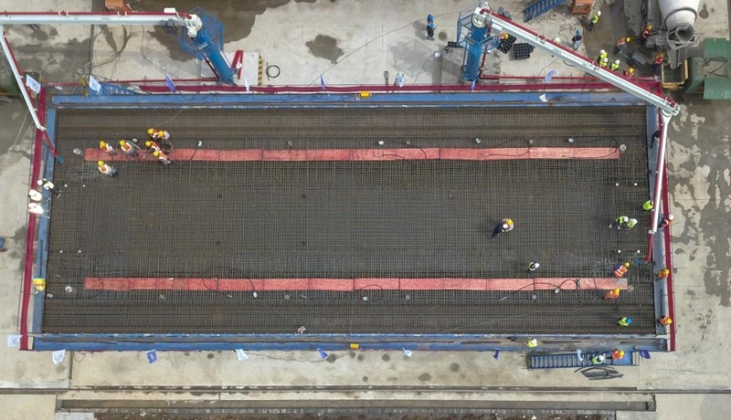廊坊凱博建設(shè)機械科技有限公司(凱博科技)依托北京建筑機械化研究院有限公司在鋼筋加工機械領(lǐng)域多年的技術(shù)積累,針對高鐵箱梁預(yù)制施工各環(huán)節(jié)對鋼筋制品的差異化需求,潛心研究、精心攻關(guān),按照中鐵十一局集團橋梁有限公司項目需求,助力新建首個滬渝蓉項目武宜段WYZQ-5標荊門鐘祥制梁場。其中鋼筋加工數(shù)字化項目,包含GQX-300數(shù)控鋼筋剪切生產(chǎn)線、GWXL2-32D數(shù)控彎曲中心、GWXL4-25D數(shù)控彎曲中心、GQX-GWX-25數(shù)控鋼筋剪切彎曲一體生產(chǎn)線、GGJ12數(shù)控鋼筋彎箍機、GT5-12調(diào)直機(32米)、GTWQ12調(diào)直五機頭、HJDW12焊接定位網(wǎng)等多種設(shè)備,可定制化生產(chǎn)高鐵箱梁預(yù)制施工各環(huán)節(jié)多種鋼筋制品。